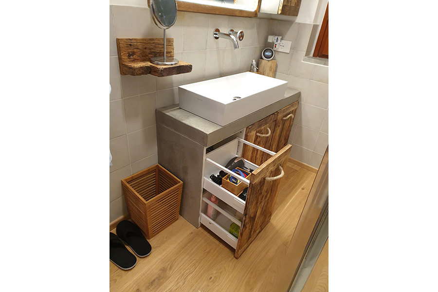 Ante bagno in legno di recupero (XN-BAG004): dettaglio cassetto