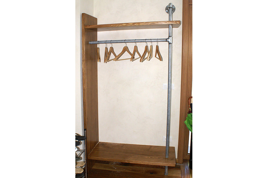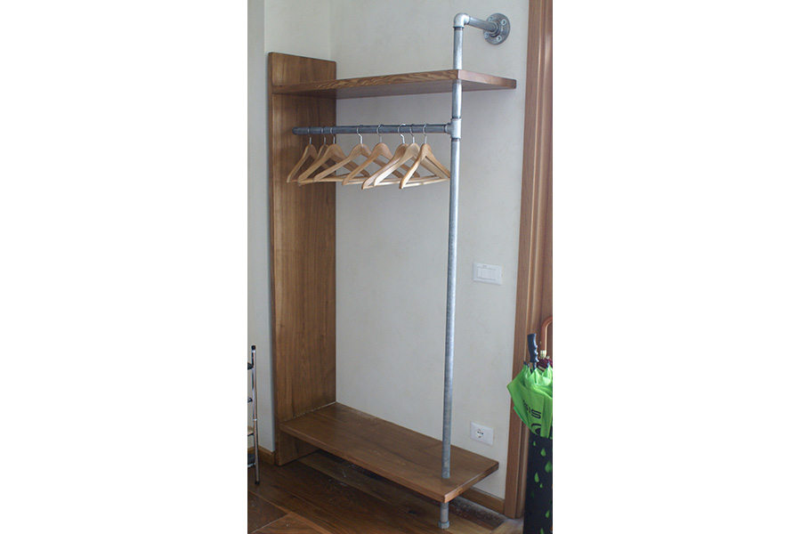 Il secondo modello di appendiabiti è realizzato con legno di castagno e tubi in acciaio, oltre a 2 comodi ripiani, uno superiore ed uno inferiore, dove si possono riporre anche cappelli, borse, accessori vari e scarpe. Se preferisci questo modello, acquistalo subito!