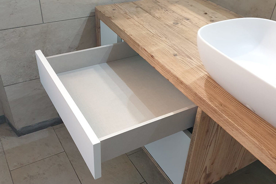 L’arredo bagno in legno di recupero (XN-BAG008) fa parte della nuova serie XN (Serie X-Natura) disegnata da Andrea Lapi.