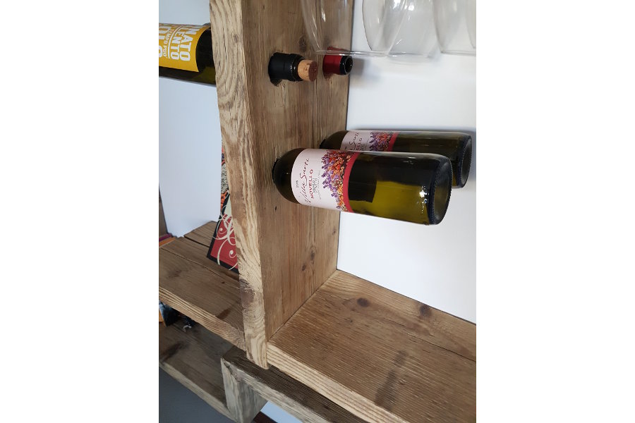 Cantinetta in legno di recupero (XN-CAN003) - dettaglio delle bottiglie