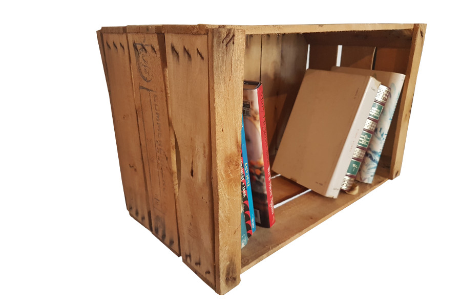 Questa cassetta da frutta pensile libreria è realizzata utilizzando una cassetta da frutta riciclata.