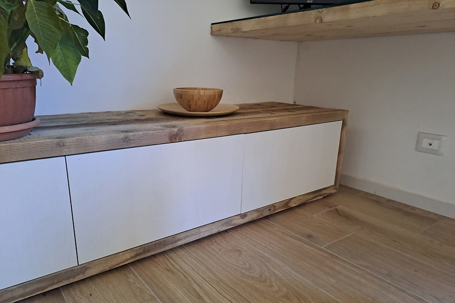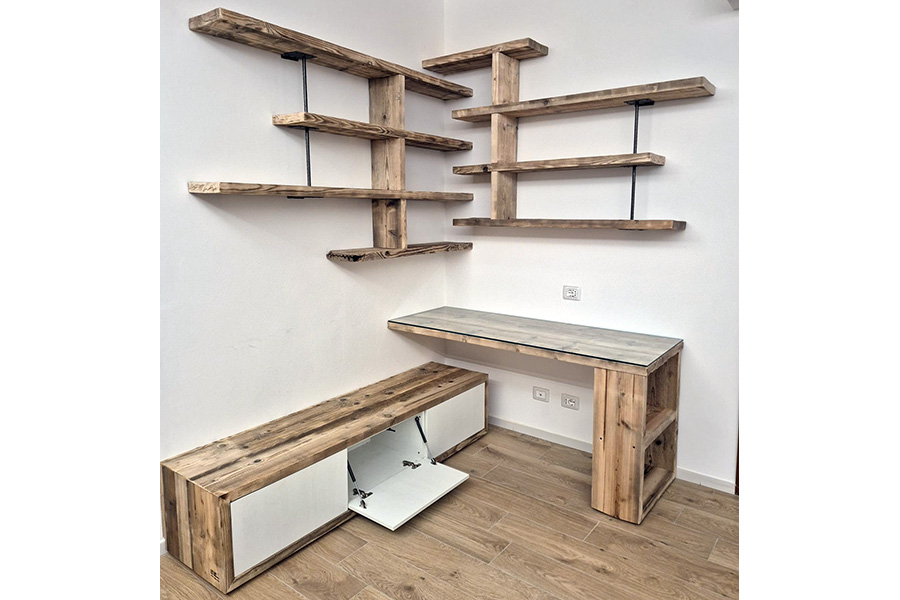 Composizione ad angolo in legno di recupero (XT-COM022)
