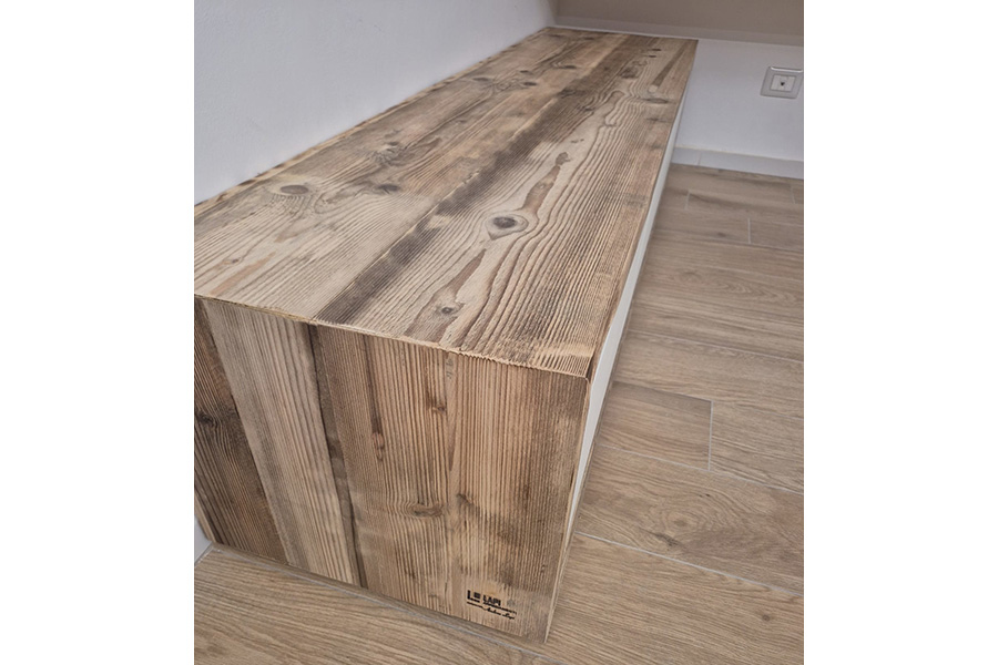 Per la serie X-Tube, sempre più richiesta, vi mostriamo la nuova composizione ad angolo in legno di recupero.