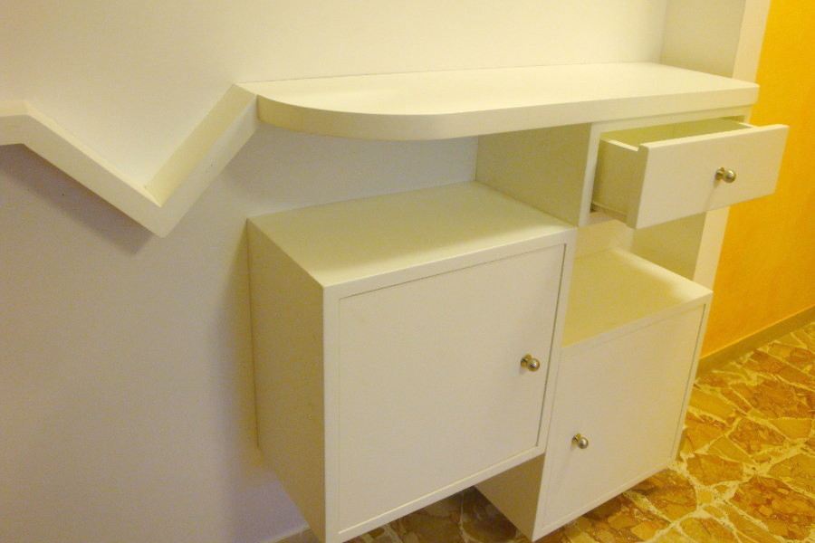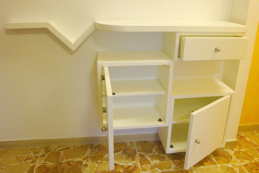 Composizione per ingresso su misura formata da un insieme di pensili a muro con una linea classica ma dal gusto moderno. Completano la realizzazione mensole e specchi. La finitura può essere realizzata nel colore che preferisci e che meglio si adatta alla tua casa. Lapi Arredamenti sfrutta ogni spazio in modo originale, per rendere unico il tuo ingresso.