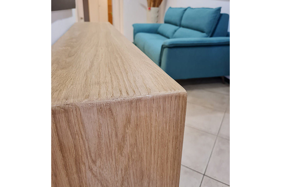 Questa consolle in rovere è stata costruita su richiesta del cliente per essere abbinata alla zona giorno dove già erano presenti elementi da noi realizzati in rovere naturale.