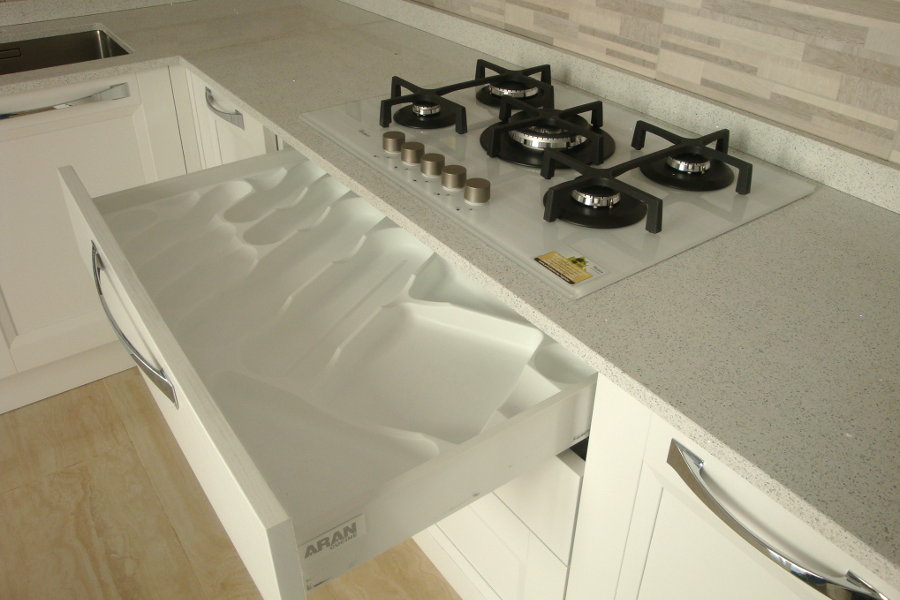 Cucina classica laccata a poro aperto (PP-CC004) - piano cottura e porta posate