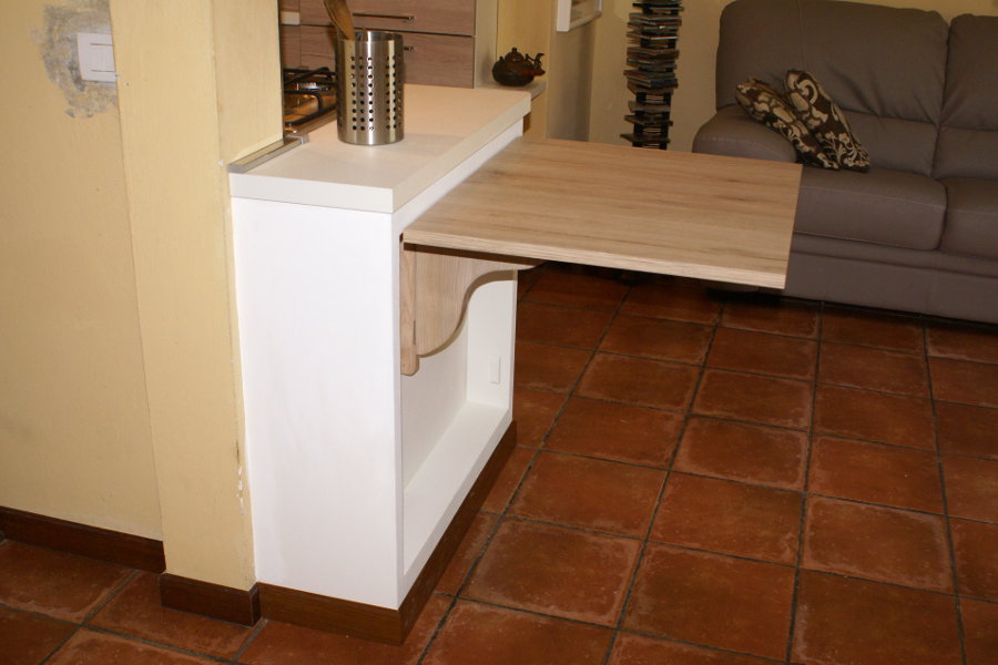 Cucina moderna (GC-CUC004) - dettaglio del tavolo abbattibile.