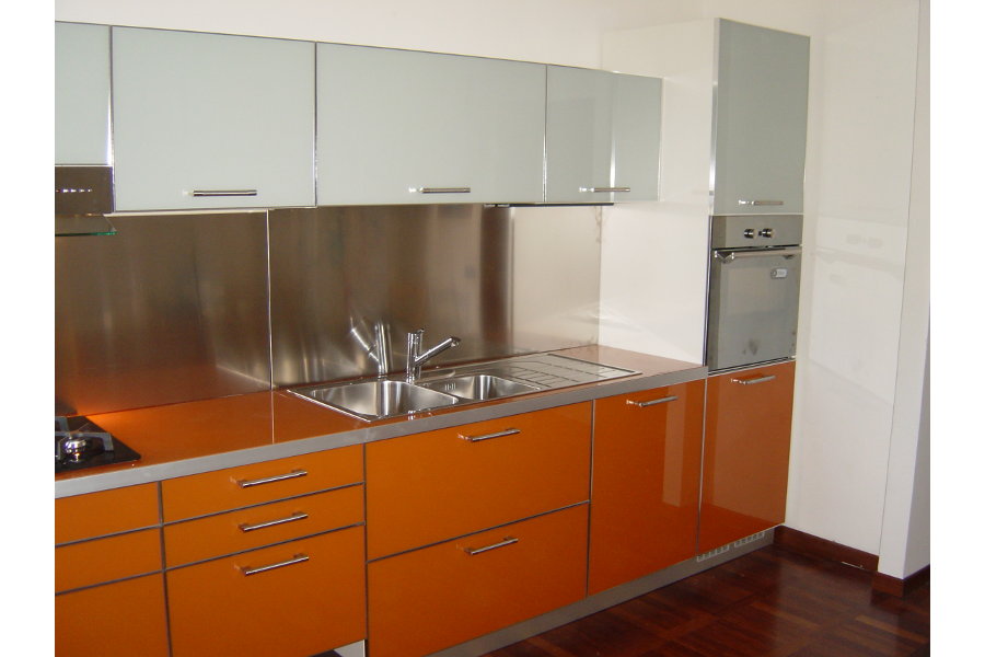 Una cucina moderna in vetro funzionale, realizzata su misura.