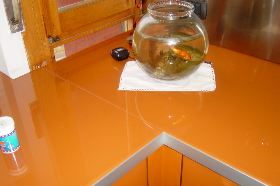 Cucina moderna in vetro (AL-CUC004) - dettaglio del vetro