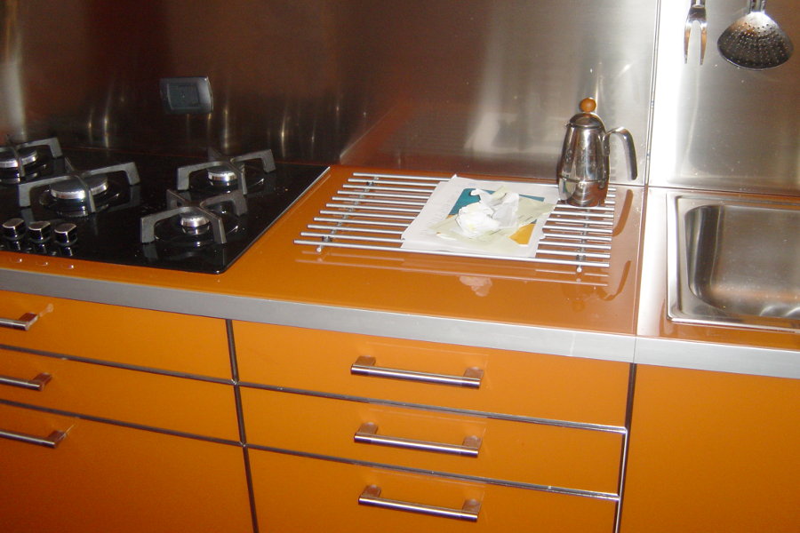 Questa cucina ha un particolarissimo colore arancione.
