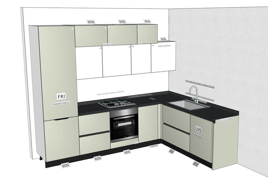 La realizzazione di una cucina moderna parte sempre da una progettazione accurata, che viene fatta insieme al cliente in maniera da seguire e rispettare gusti, esigenze e spazi. Si vede infatti come anche per questa cucina moderna laccatura opaca, il disegno rispetti la realizzazione della cucina.