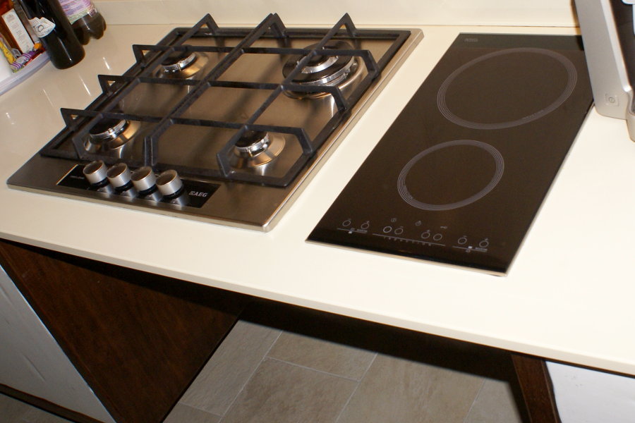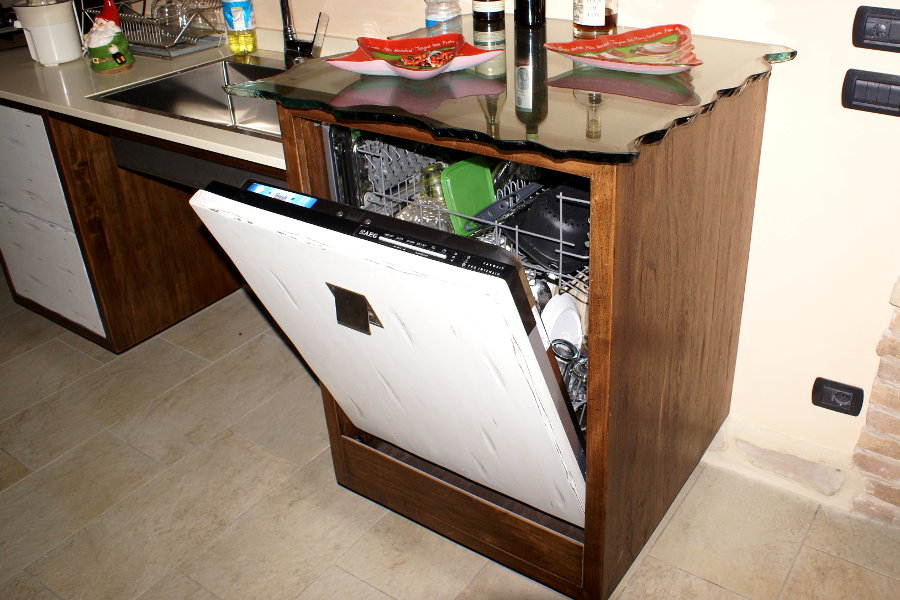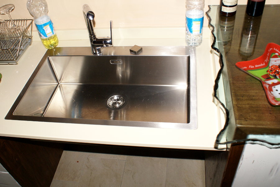 Cucina modello X-GOLD realizzata su misura. La base ad angolo è fornita del cestello girevole, i piani cottura sono due, uno tradizionale ed uno ad induzione. Il lavello a vasca unica in acciaio è stato montato a filo top sul piano in agglomerato di quarzo. Lo scolapiatti è stato realizzato nel cestone di una delle basi. In questo caso, lo spazio a disposizione era ampio, ma possiamo adattare questa cucina anche ad un ambiente più piccolo, sfruttando ogni spazio a disposizione.