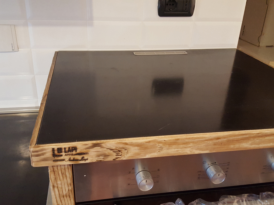 Cucina X-Natura in legno di recupero XN-CUC002 - Particolare del piano cottura in vetroceramica