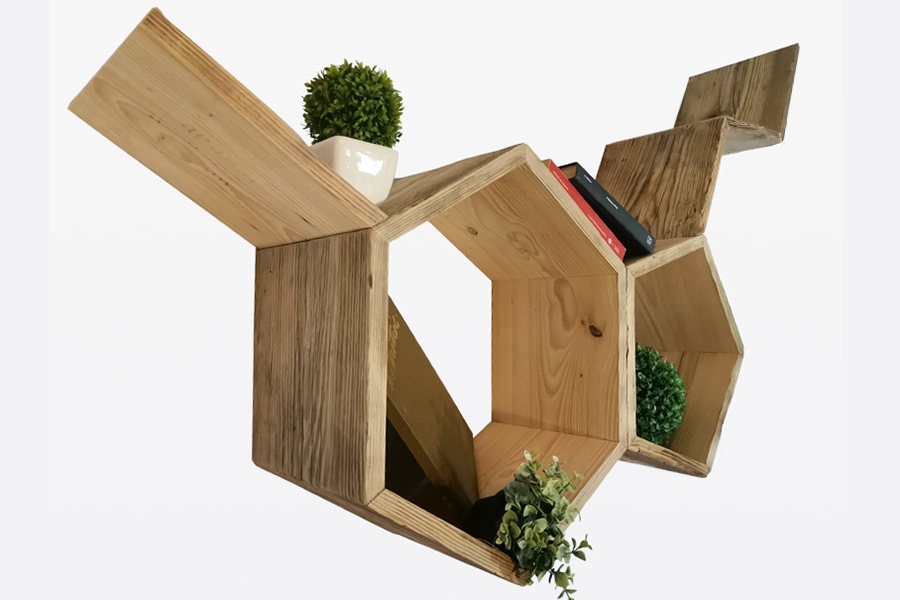 Libreria in legno di recupero “molecole” (XN-LIB018-9)