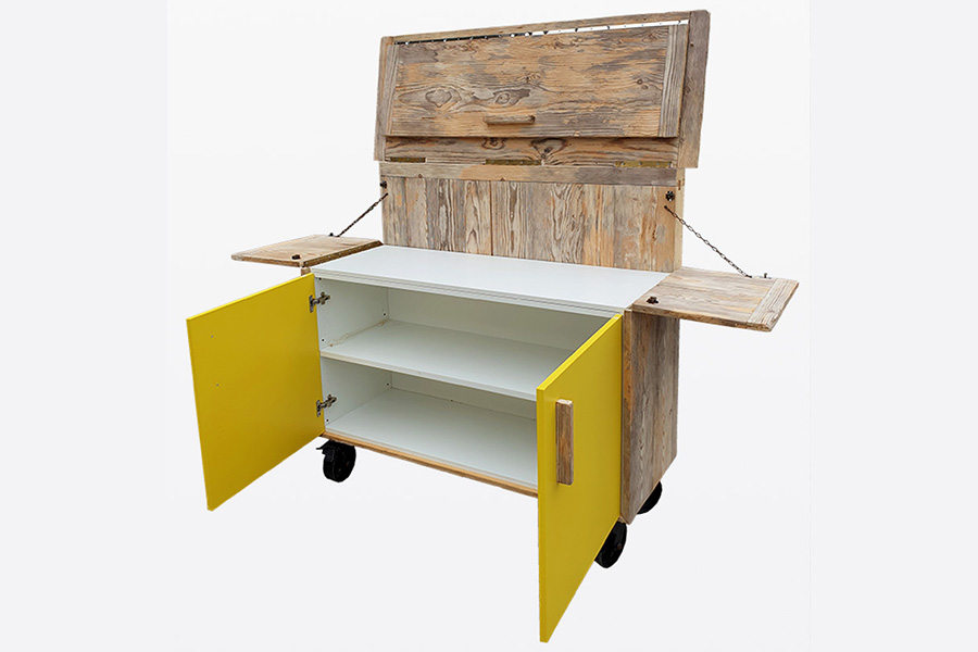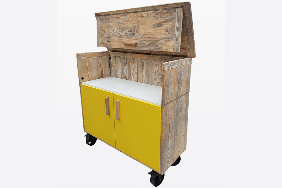 Anche per questo mobile è stato utilizzato legno di recupero e le parti il legno vecchio sono state finite al naturale senza nessun protettivo.