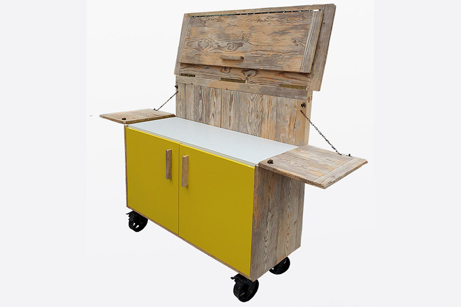 Particolare madia in legno di recupero realizzata su misura. Questa madia è indicata per contenere i robot da cucina, la macchinetta del caffè, la macchina per il pane e altri strumenti o utensili da cucina.