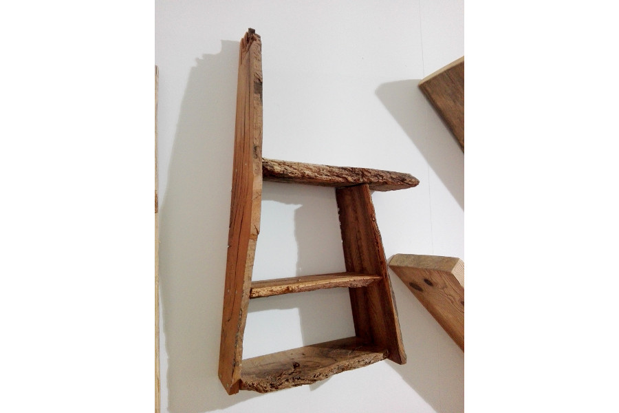 Questa mensola in legno di recupero, dalla forma molto particolare, è realizzata su misura.