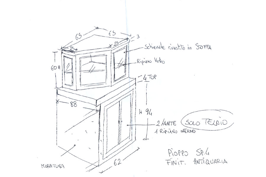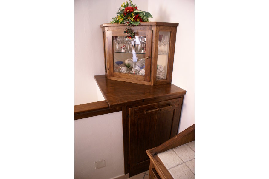 Mobiletto in massello realizzato su disegno per essere parte integrante del muretto delle scale, con vetrinetta a angolo in massello sovrastante, tutto realizzato su misura. Lapi Arredamenti studia la soluzione più adatta per poter sfruttare al meglio uno spazio inutilizzato della tua casa, con composizioni originali e che si adattano al tuo ambiente.