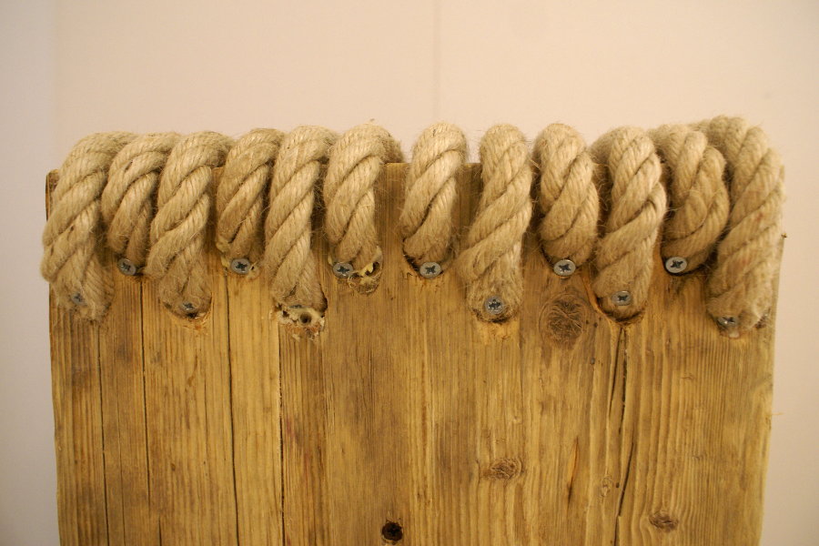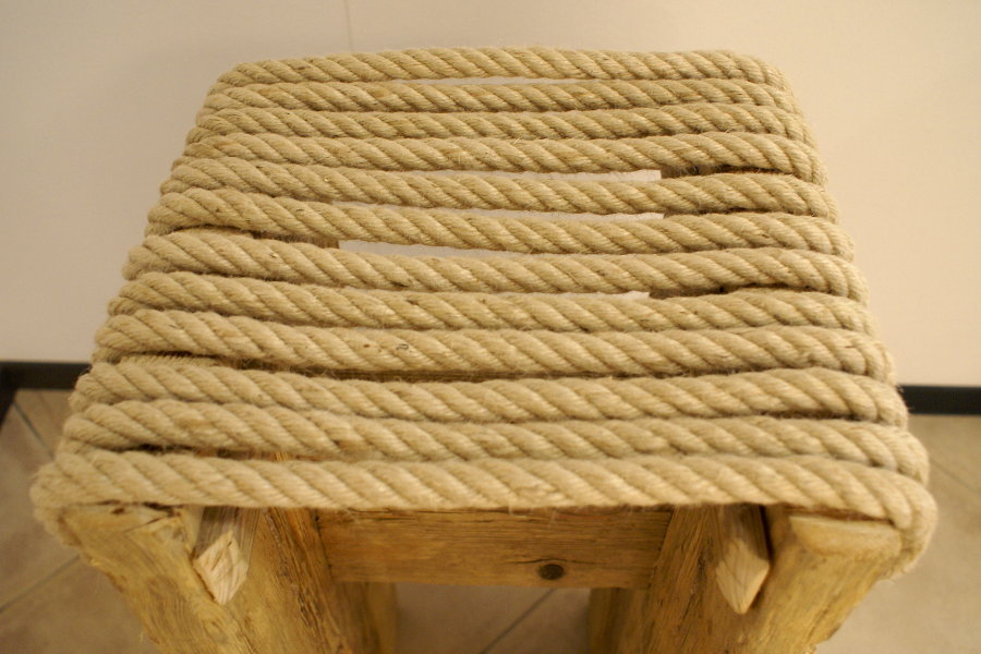 Sgabello in legno di recupero e corda (XN-SED004) - dettaglio della corda