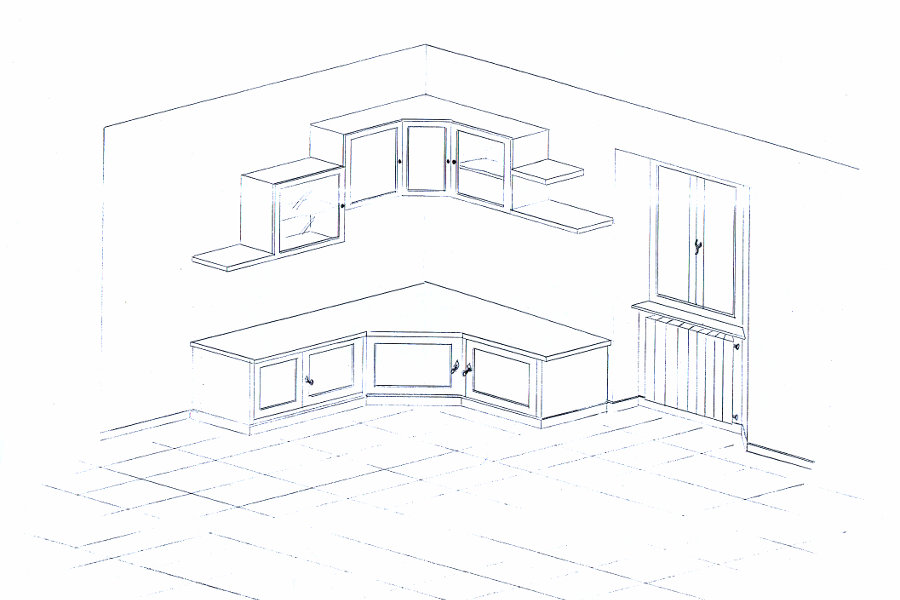 La sequenza fotografica mostra, a partire dal disegno, la realizzazione dell’arredamento di questa stanza: sebbene lo spazio a disposizione sia ridotto, il soggiorno ha tutto quello che serve.