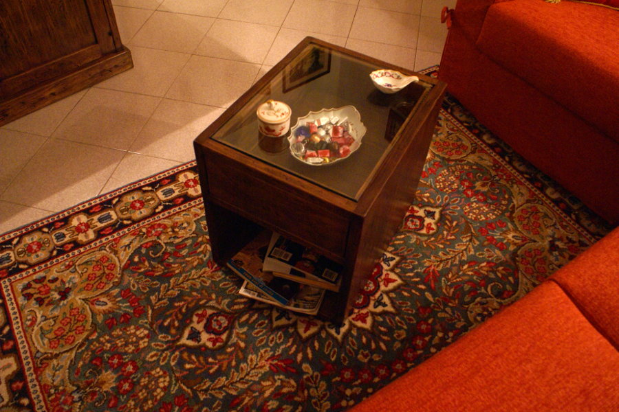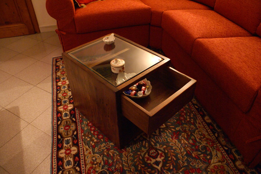 Soggiorno ad angolo linea X-Wood (XW-SOG007) - tavolino con cassetto aperto