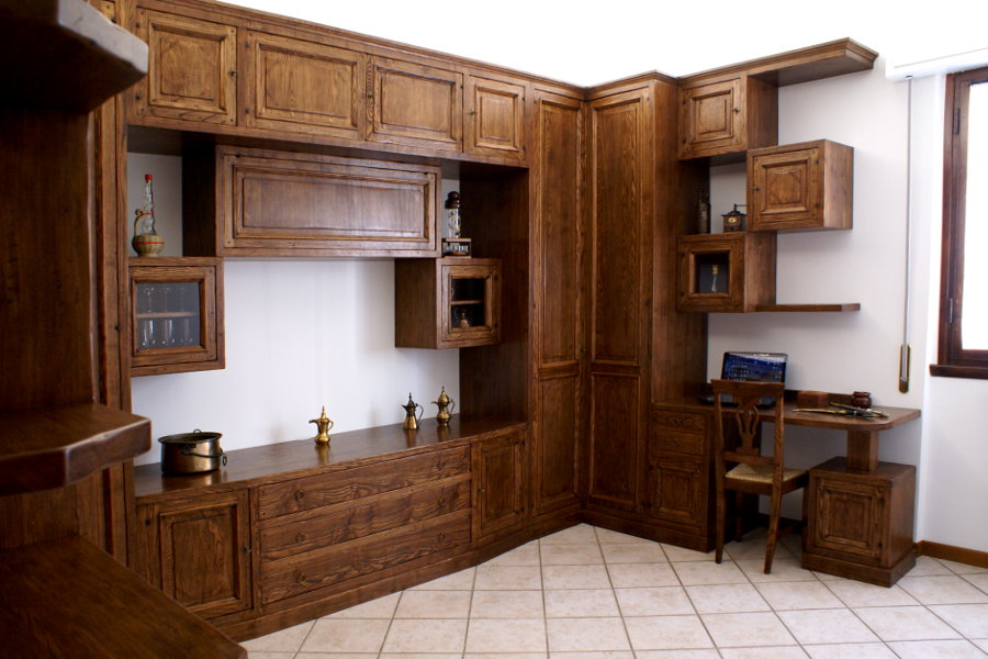 Se anche tu vuoi realizzare un soggiorno completo, disposto su tre pareti, con una zona scrivania, questo soggiorno massello linea X-Wood può essere realizzato anche a casa tua.