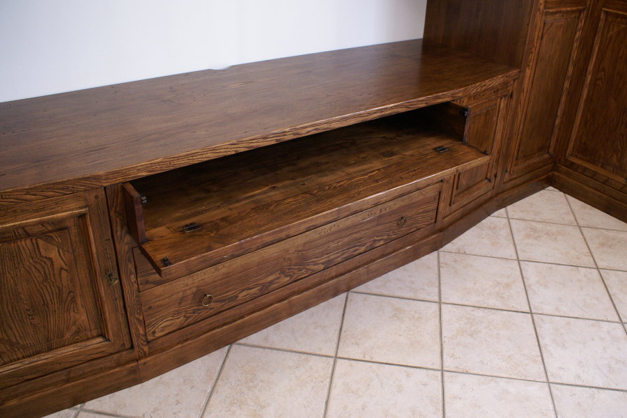 Soggiorno massello linea X-Wood (XW-SOG002) - dettaglio del cassetto con ribalta