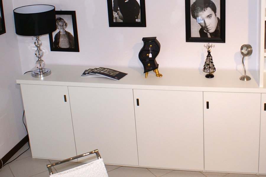 Realizzato interamente in tamburato e laccato, questo mobile da soggiorno moderno può essere realizzato su misura, a partire da un nostro disegno.