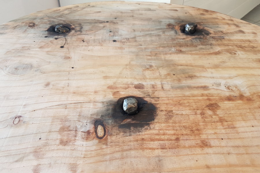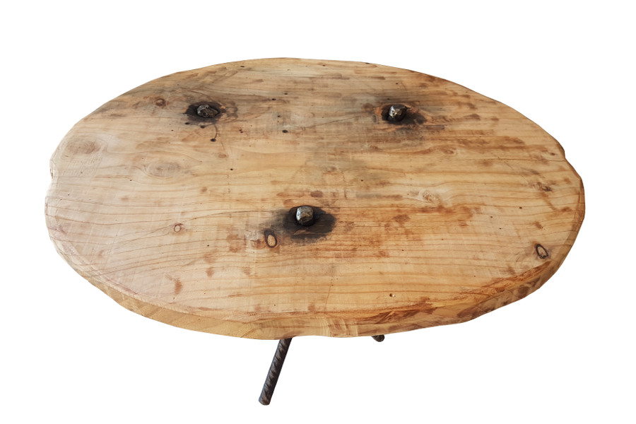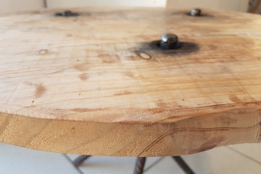 Tavolino in legno di recupero e gambe in ferro riciclato (XT-TAV002) - dettaglio dello spessore