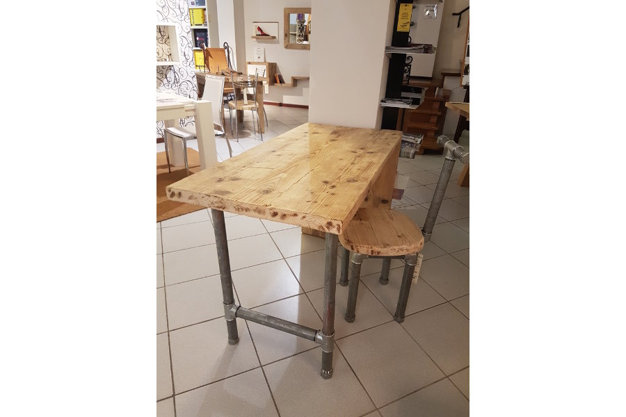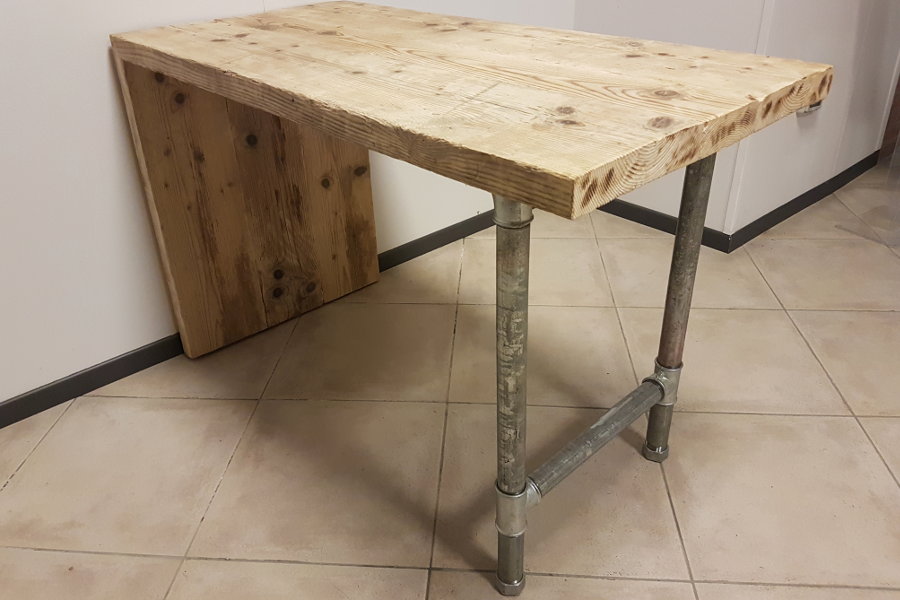 Se questo tavolo bancone in legno di recupero e tubi in acciaio ti piace così com’è, puoi acquistarlo subito.