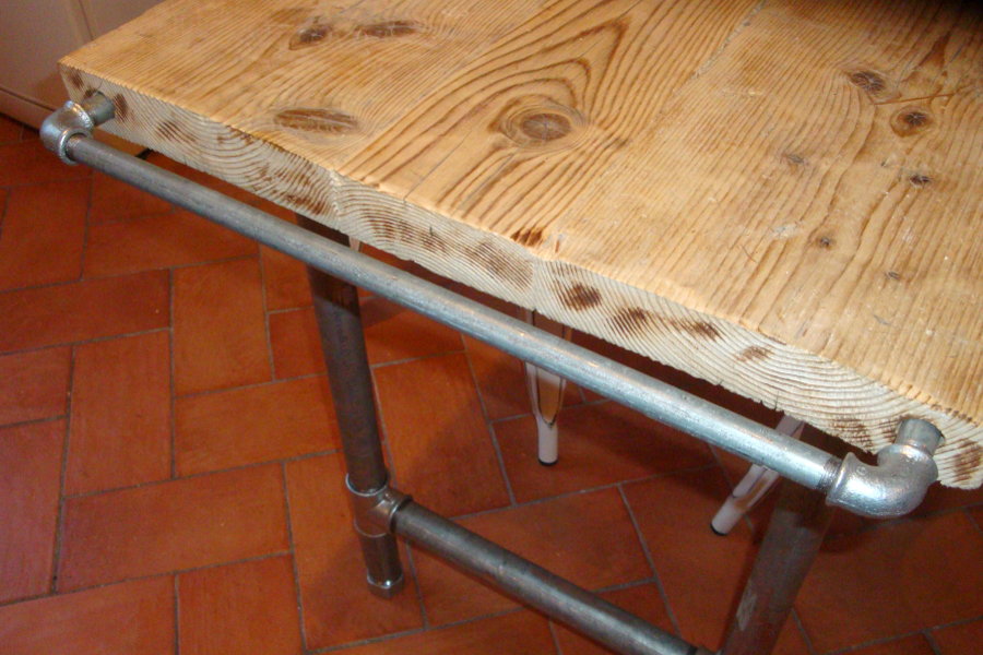 Come possiamo vedere dalle immagini, è possibile aggiungere al tavolo un accessorio portaoggetti, consistente in un tubo in acciaio da 3/8 da porre ad una delle estremità del piano.
