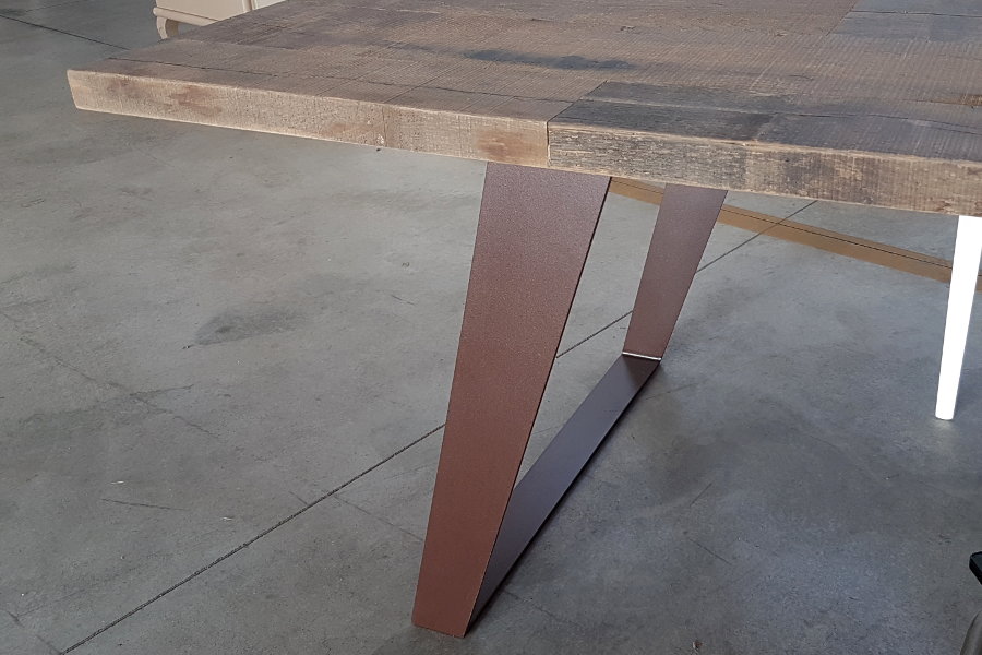 Tavolo moderno con piano in ontano (ZV-TAV001) - particolare della gamba in ferro